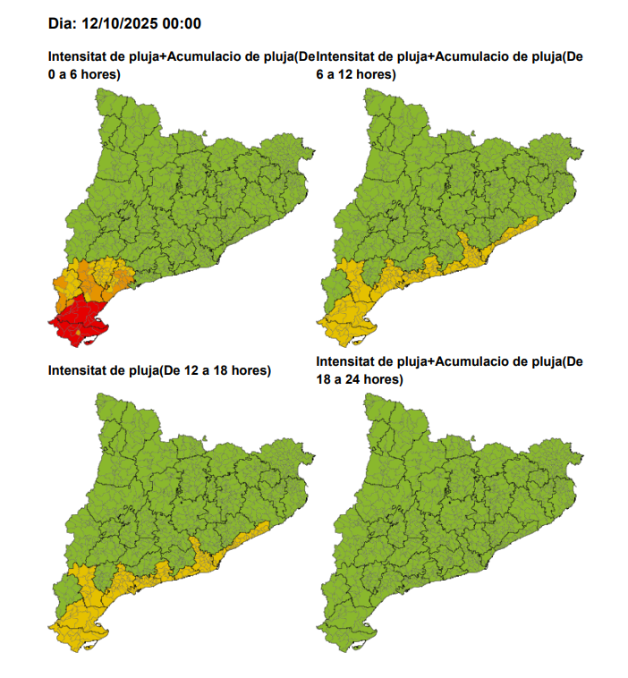 L'Ajuntament de Vilassar de Dalt manté la fase de prealerta el Pla bàsic municipal per la pluja prevista per diumenge 12 d'octubre. Per la seva banda, la Generalitat de Catalunya ha activat l'alerta del pla INUNCAT.