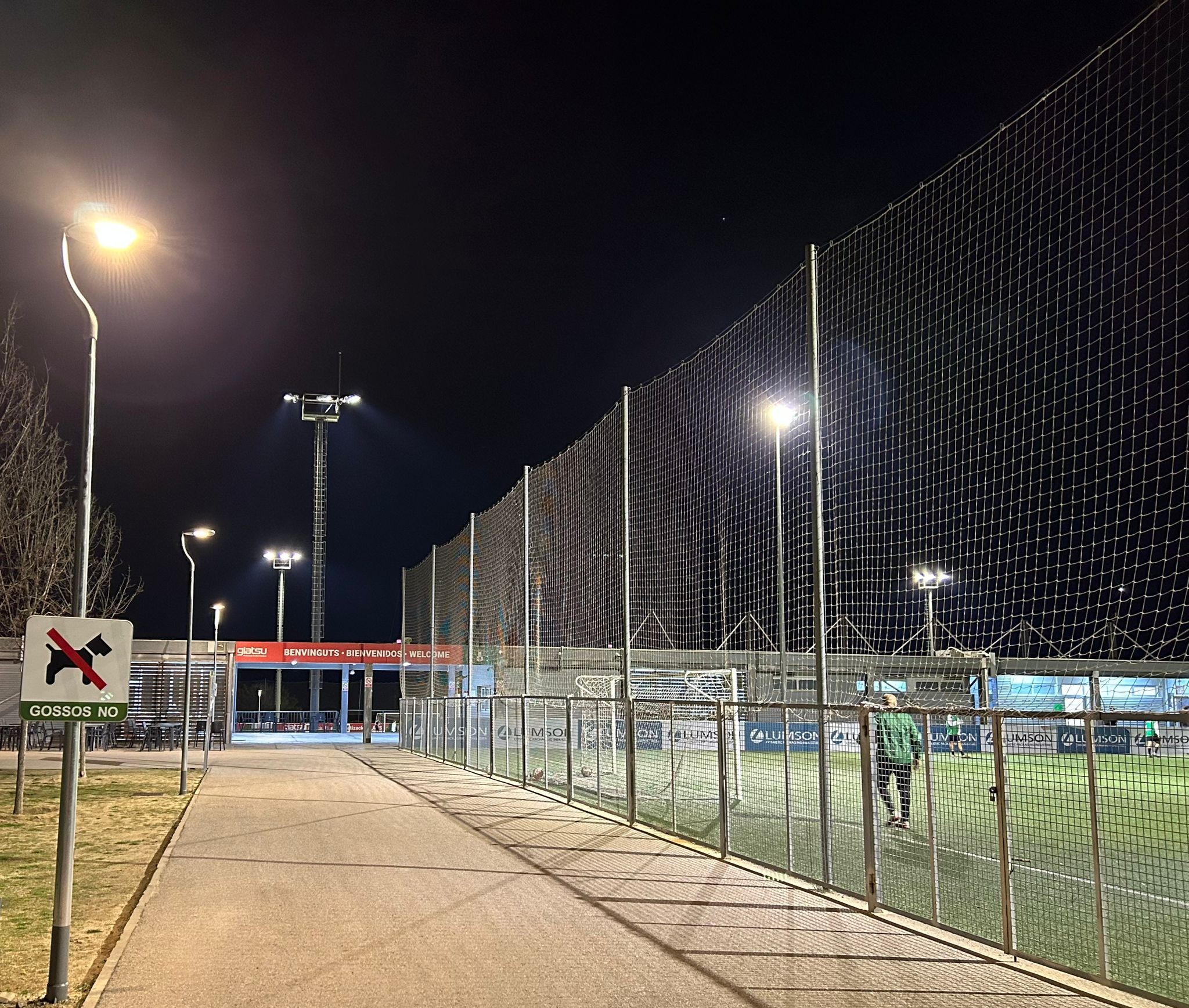 L'actuació consisteix en la instal·lació de noves llumeneres LED pels camps de joc de futbol 11 i futbol 7, així com les llumeneres perimetrals, la renovació dels suports de l'enllumenat perimetral i la instal·lació de nova xarxa de protecció perimetral.