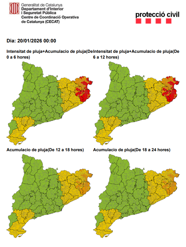 L'Ajuntament de Vilassar de Dalt posa en fase de prealerta el Pla bàsic municipal per l'acumulació de pluja prevista per demà 20 de gener. Per la seva banda, la Generalitat de Catalunya manté la fase d'alerta del pla INUNCAT.