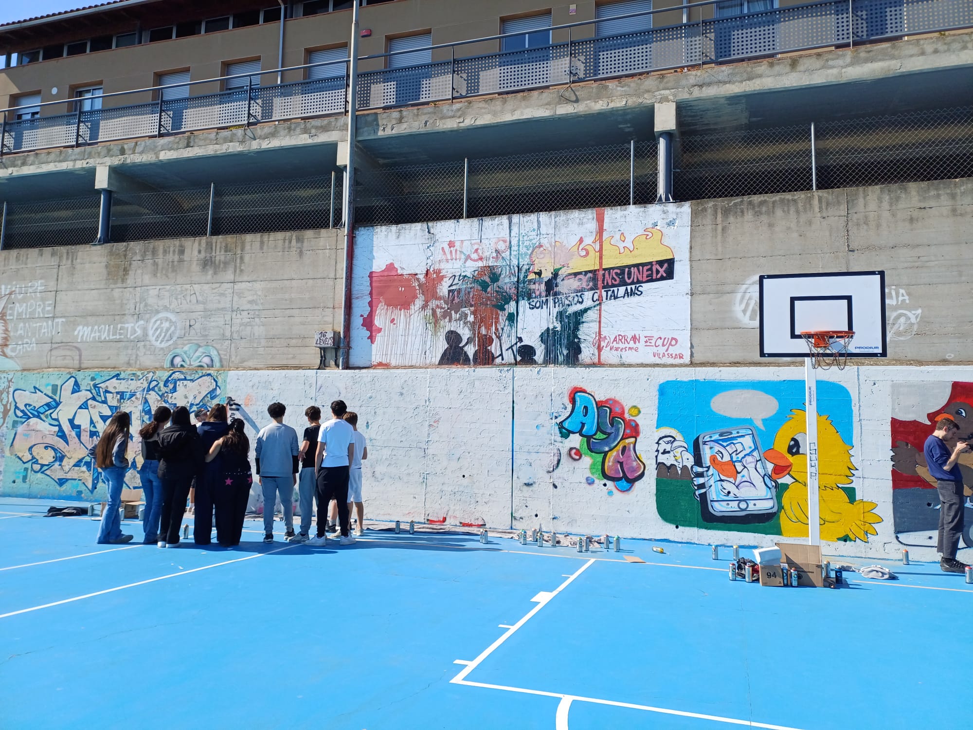 El dimecres 25 de març va finalitzar el projecte d’enguany del Batec Lliure amb la pintada d'un mural a les pistes exteriors del Poliesportiu de Can Banús.