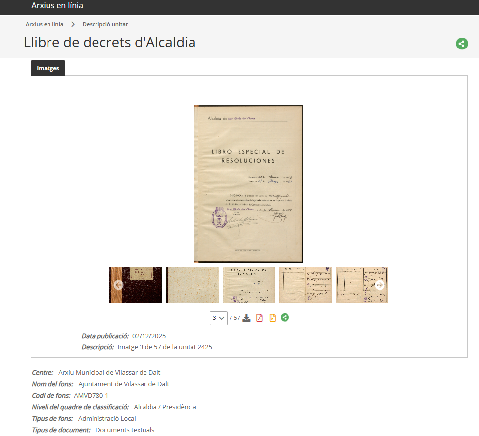 Amb aquesta acció es continua amb la tasca iniciada el 2024 amb les actes del Ple i Padrons d’habitants de facilitar a la ciutadania l’accés en línia de la documentació que fins ara només era possible consultar presencialment a l’arxiu municipal.